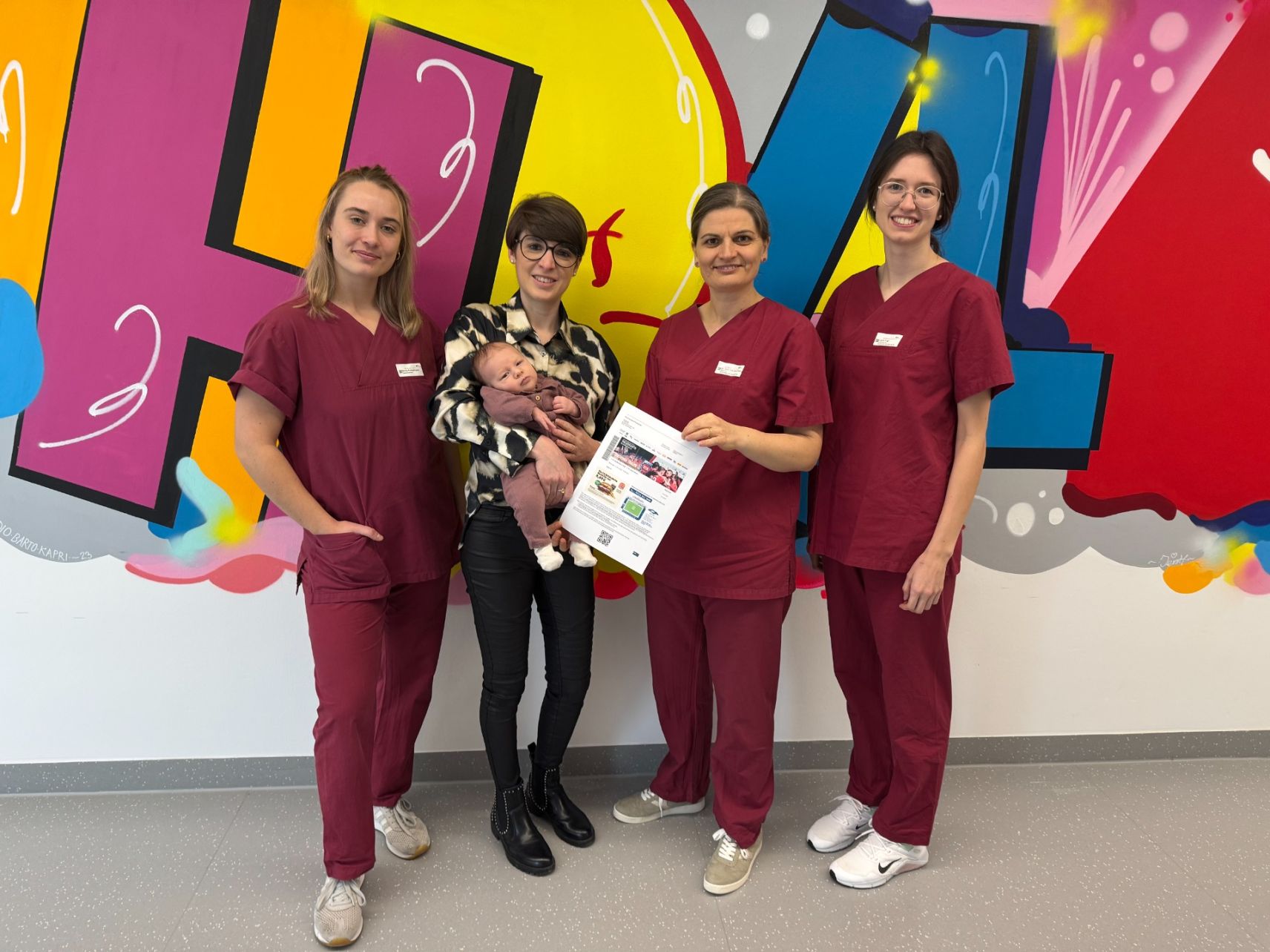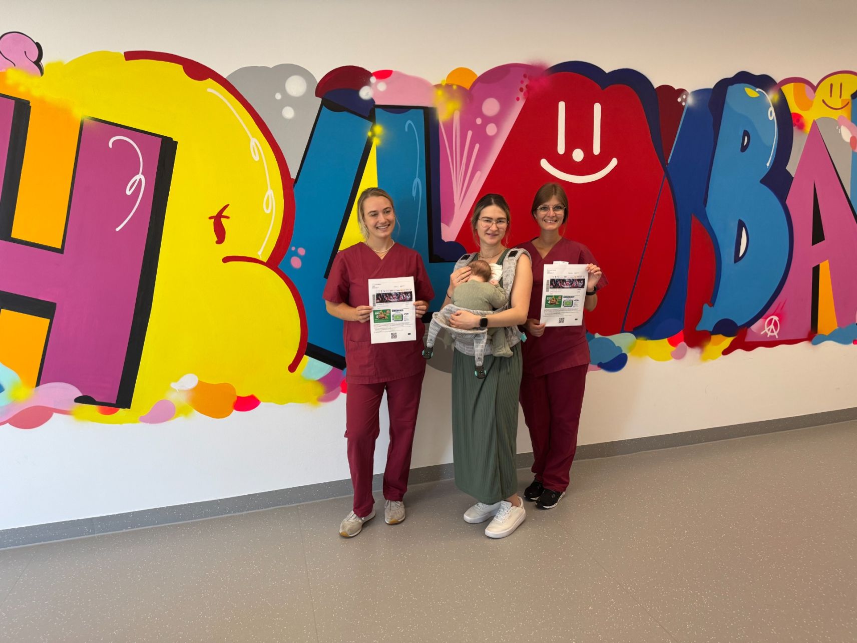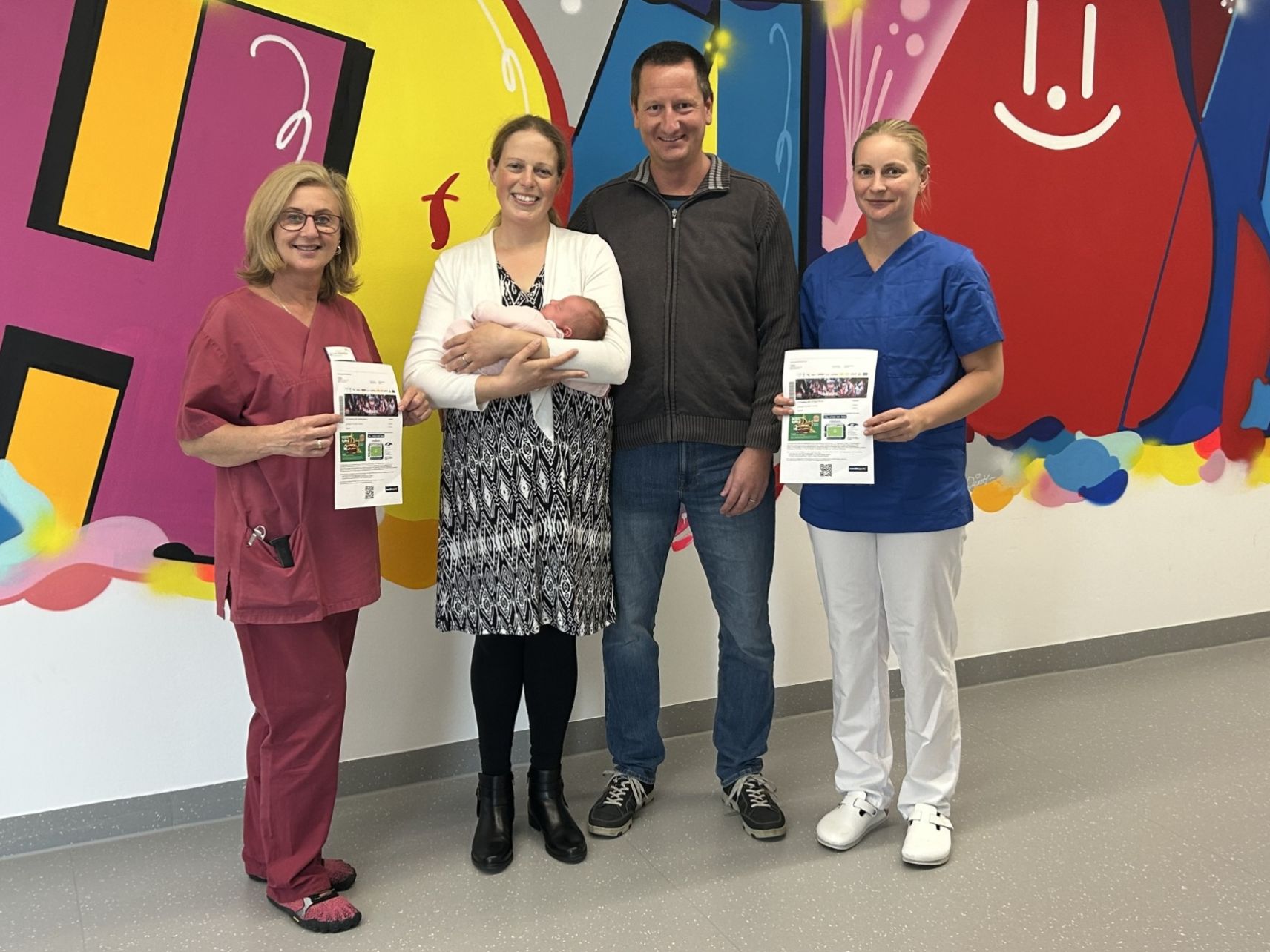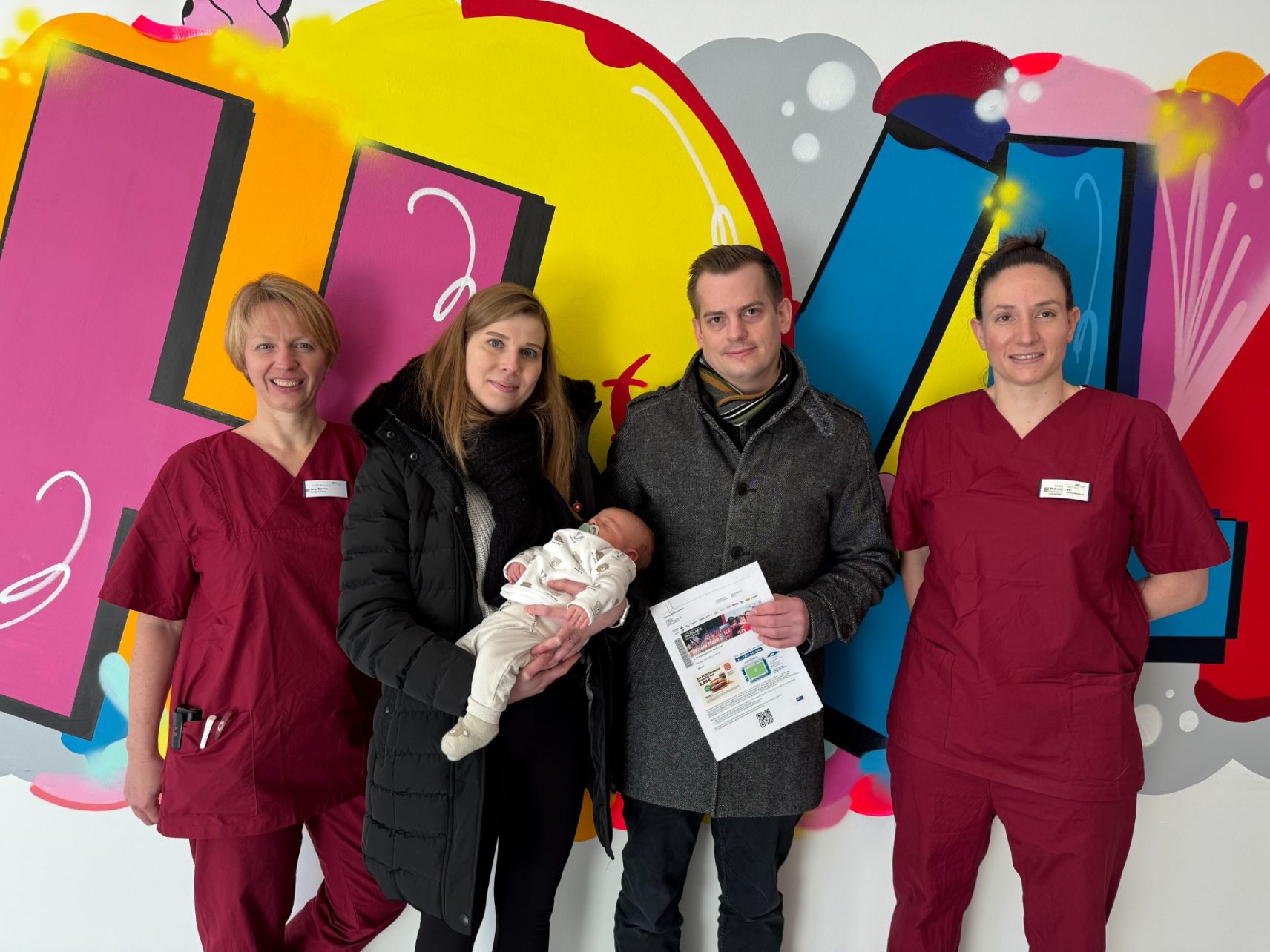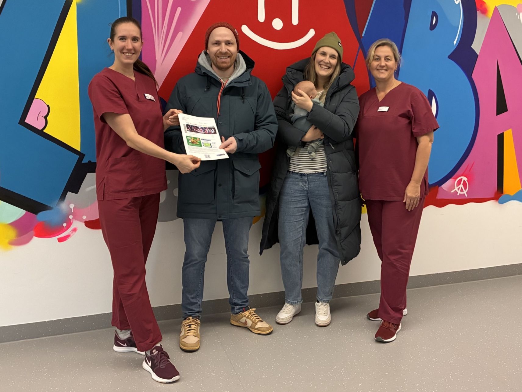 der Ticketübergabe im Klinikum Heidenheim waren dabei: (v. l.) Hebamme Jana